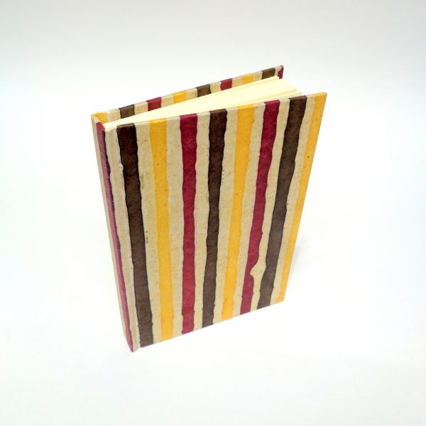 Avec son beau papier uni de qualité vergé ivoire et sa couverture cartonnée recouverte de papier népalais « Rayures », ce carnet de poche fait-main, solide et original, est idéal à emporter avec soi. Son petit format en fait un carnet aussi pratique à la maison, au travail ou encore dans le sac. Il vous sera très utile pour tout noter ou dessiner.