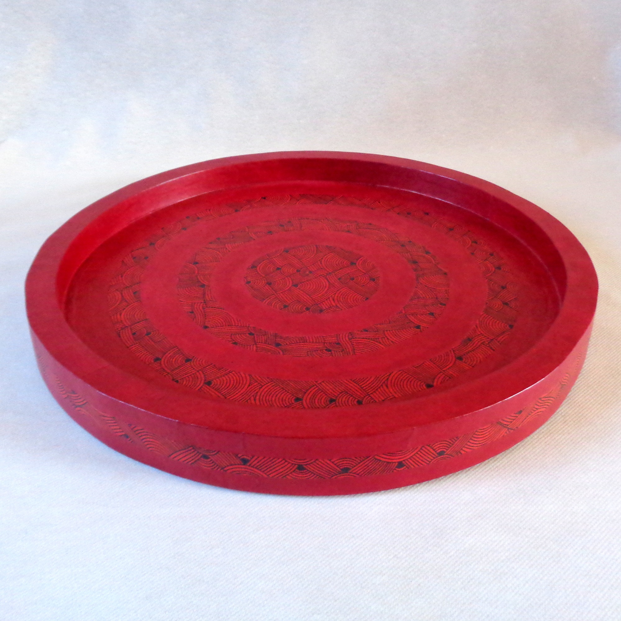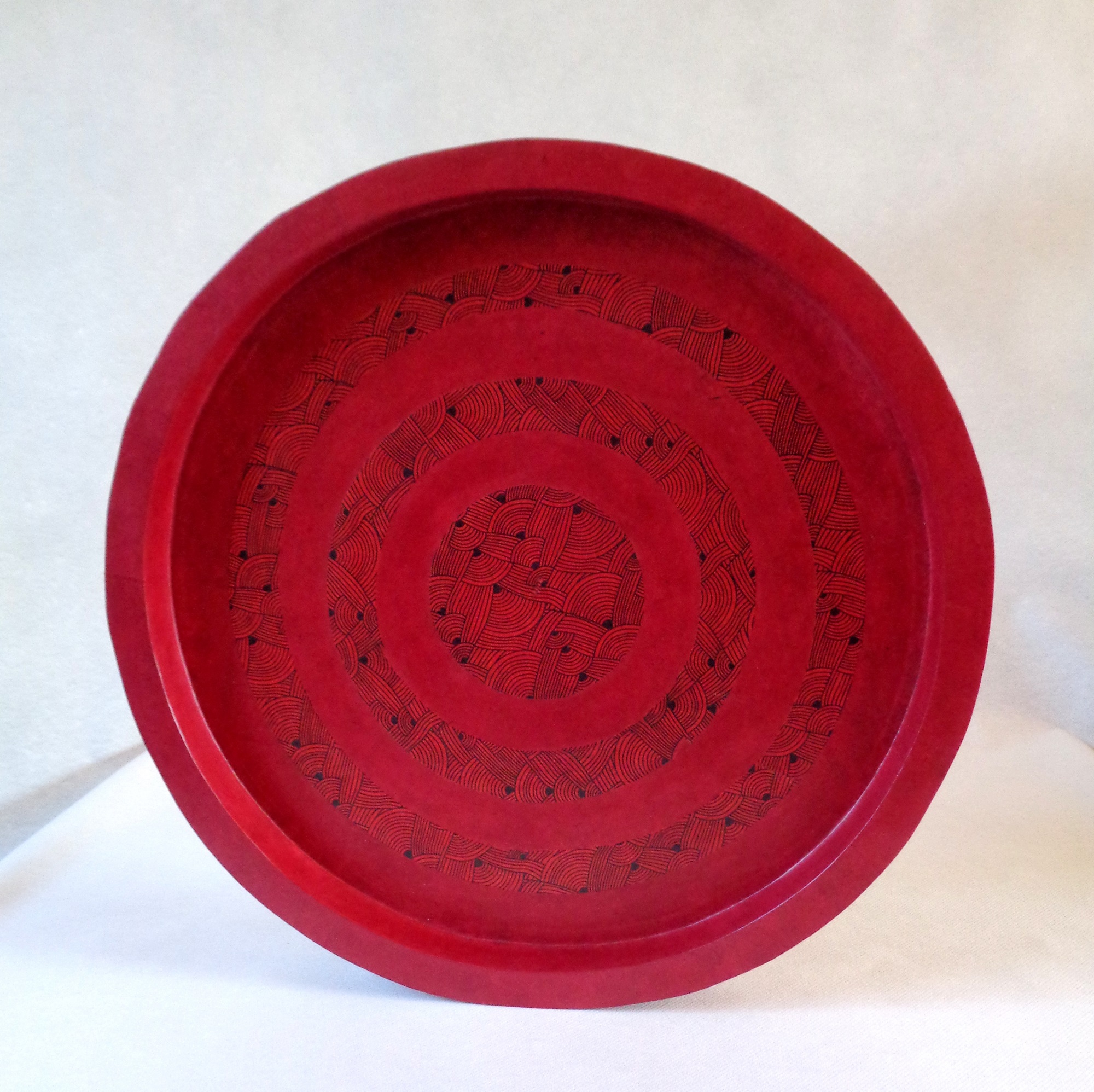 - Plateau « cible » en carton, Rouge carmin/ »Rouge Nœuds »
