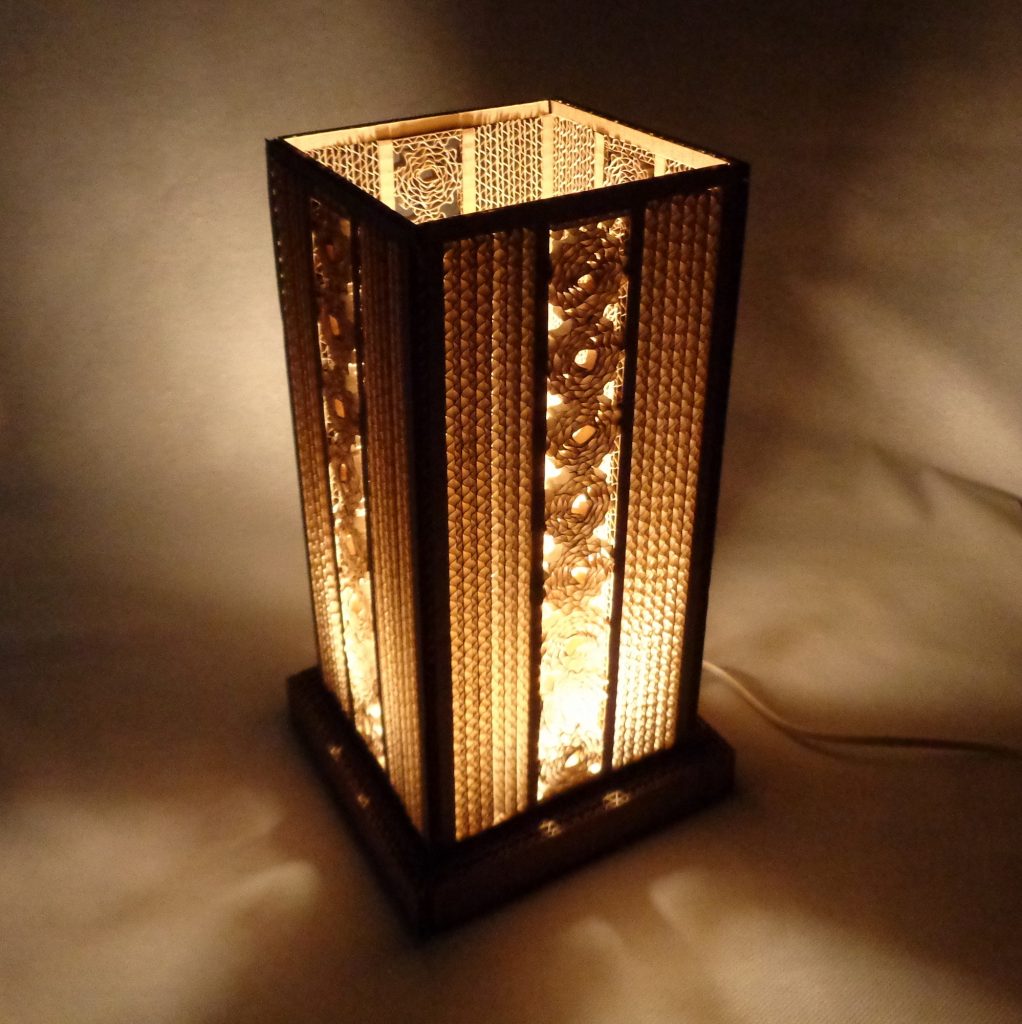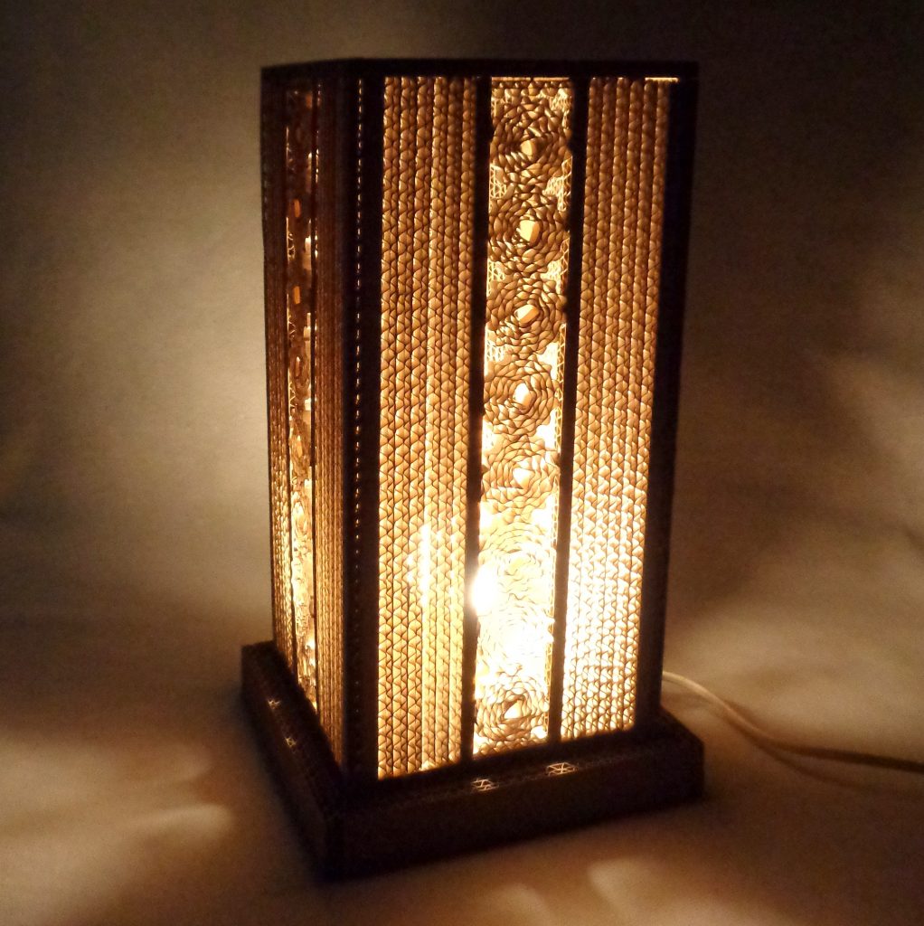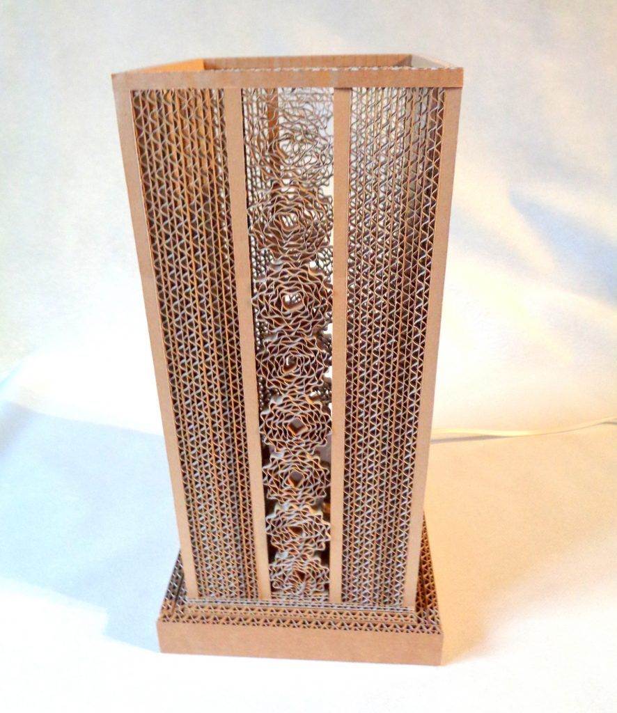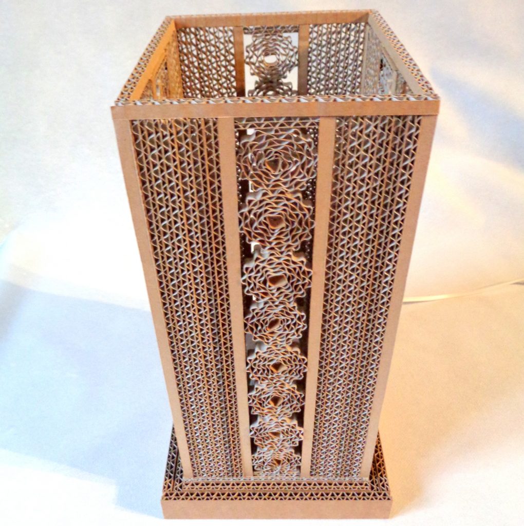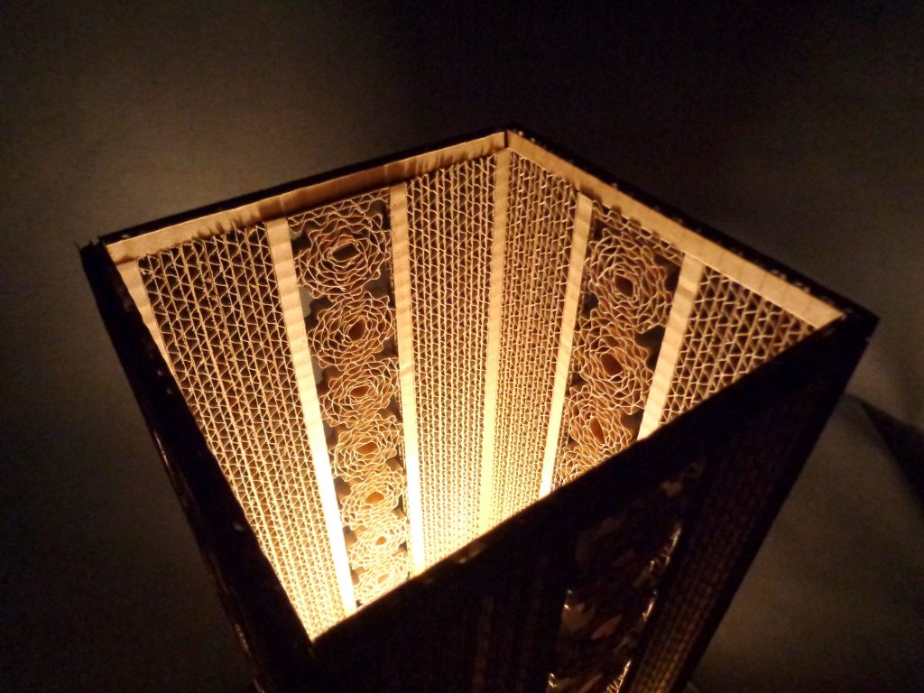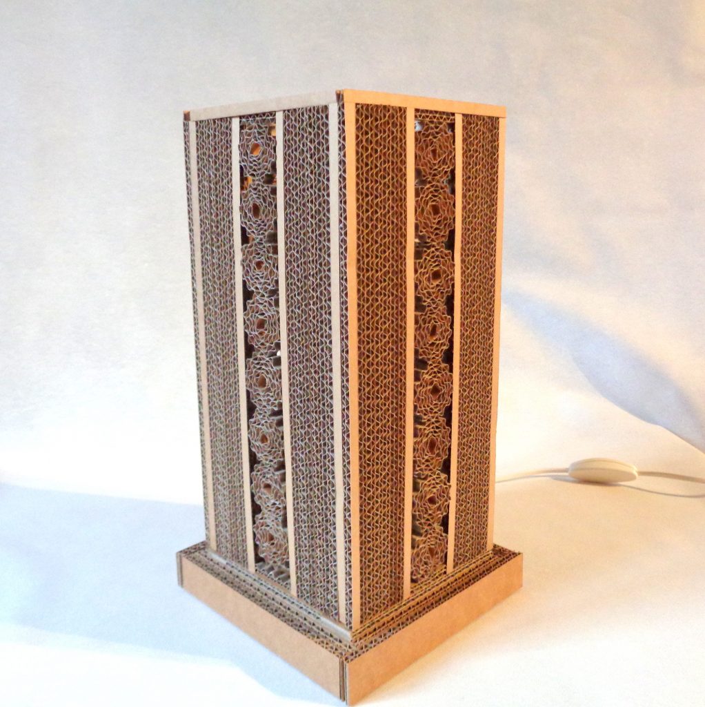 Une lampe en dentelle de carton, réalisée à partir de carton de récupération.