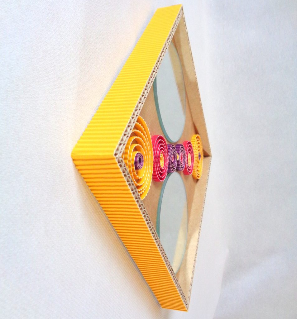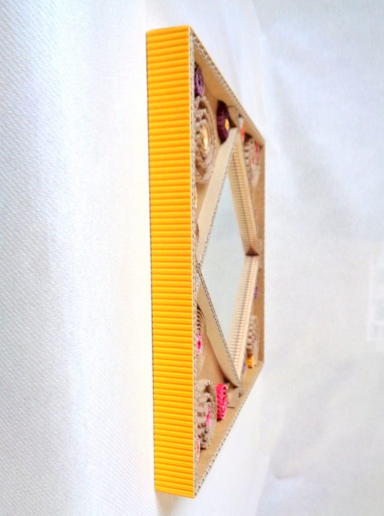Miroir carré en dentelle de carton et carton ondulé coloré