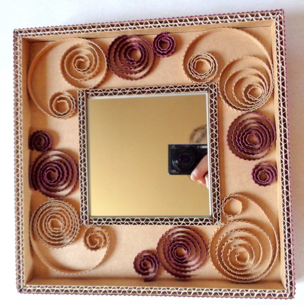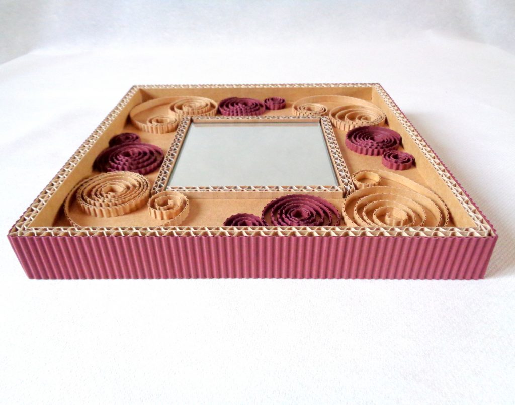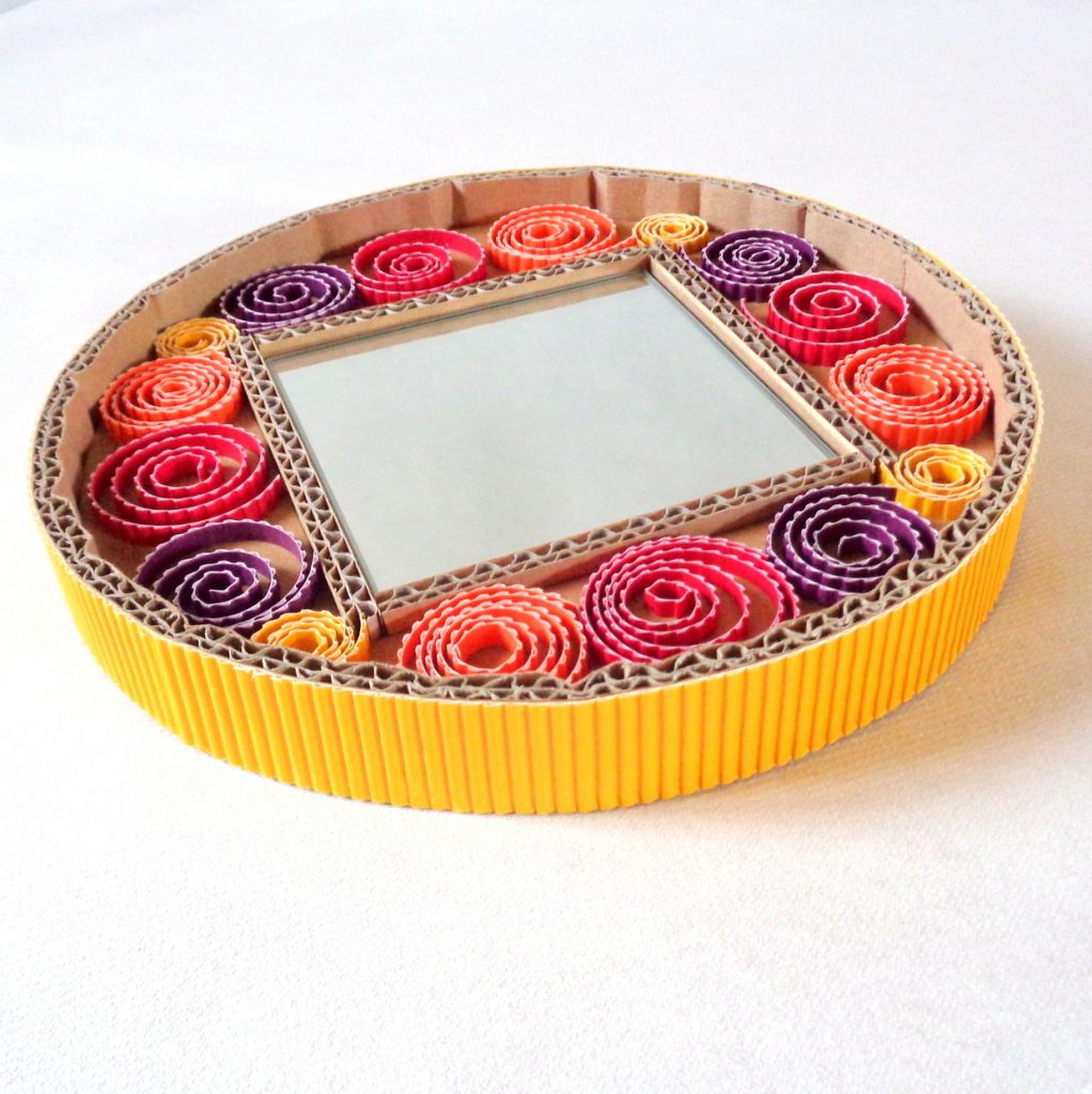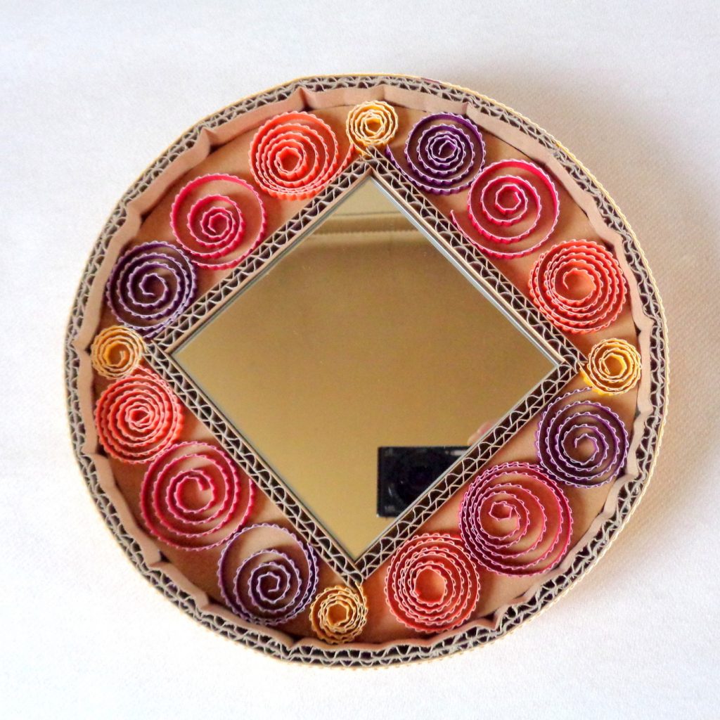 Des photos de miroirs réalisés à partir de carton de récupération et de carton ondulé coloré.