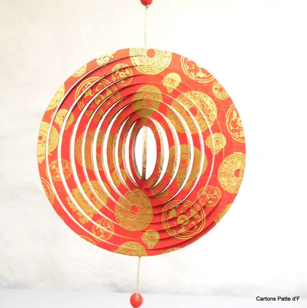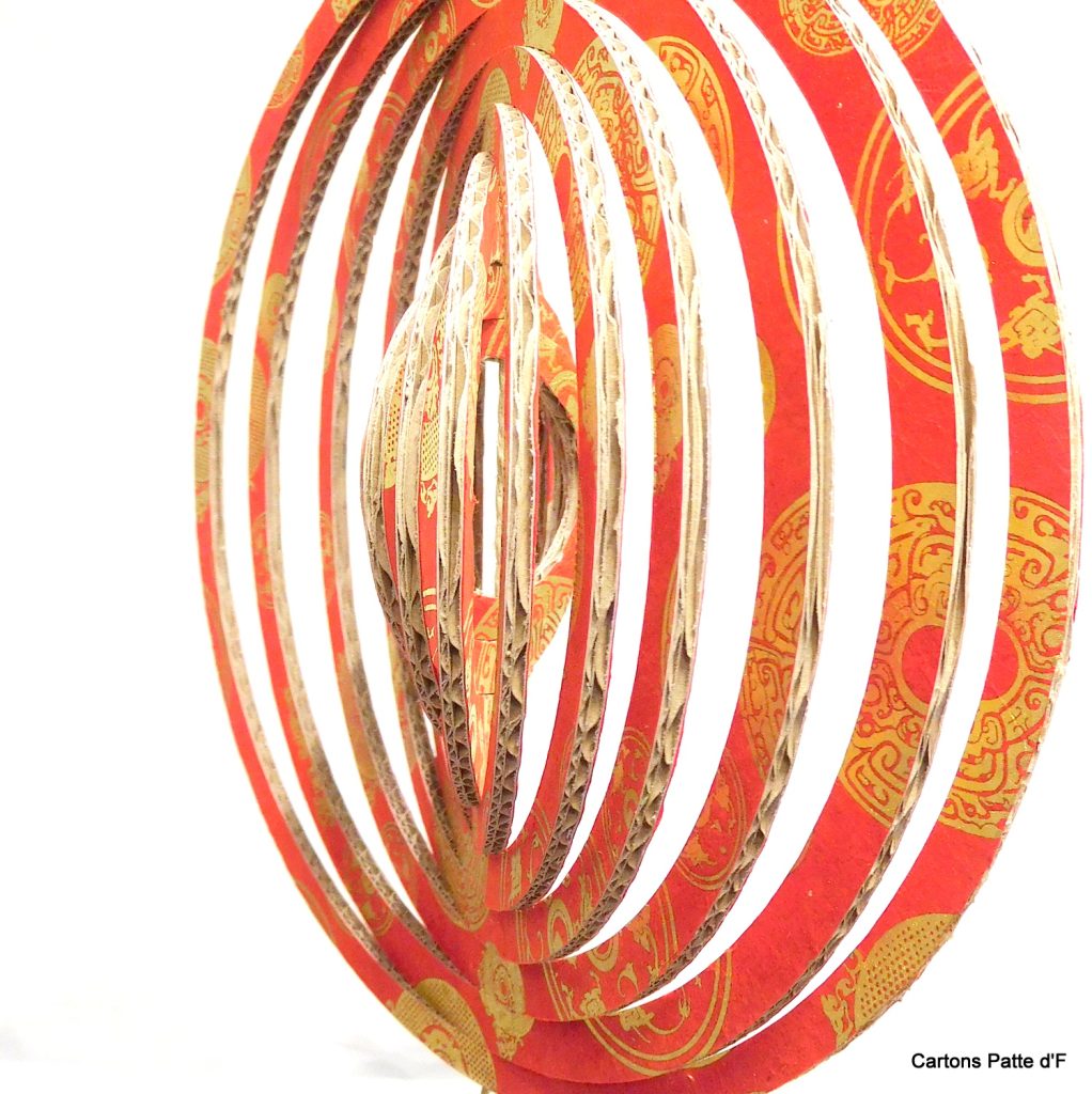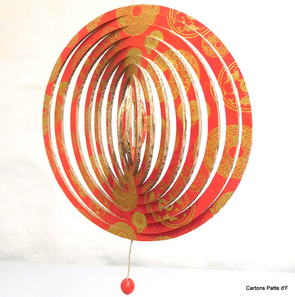 Ces mobiles sont réalisés entièrement à la main avec du carton de récupération et recouverts de papier népalais.