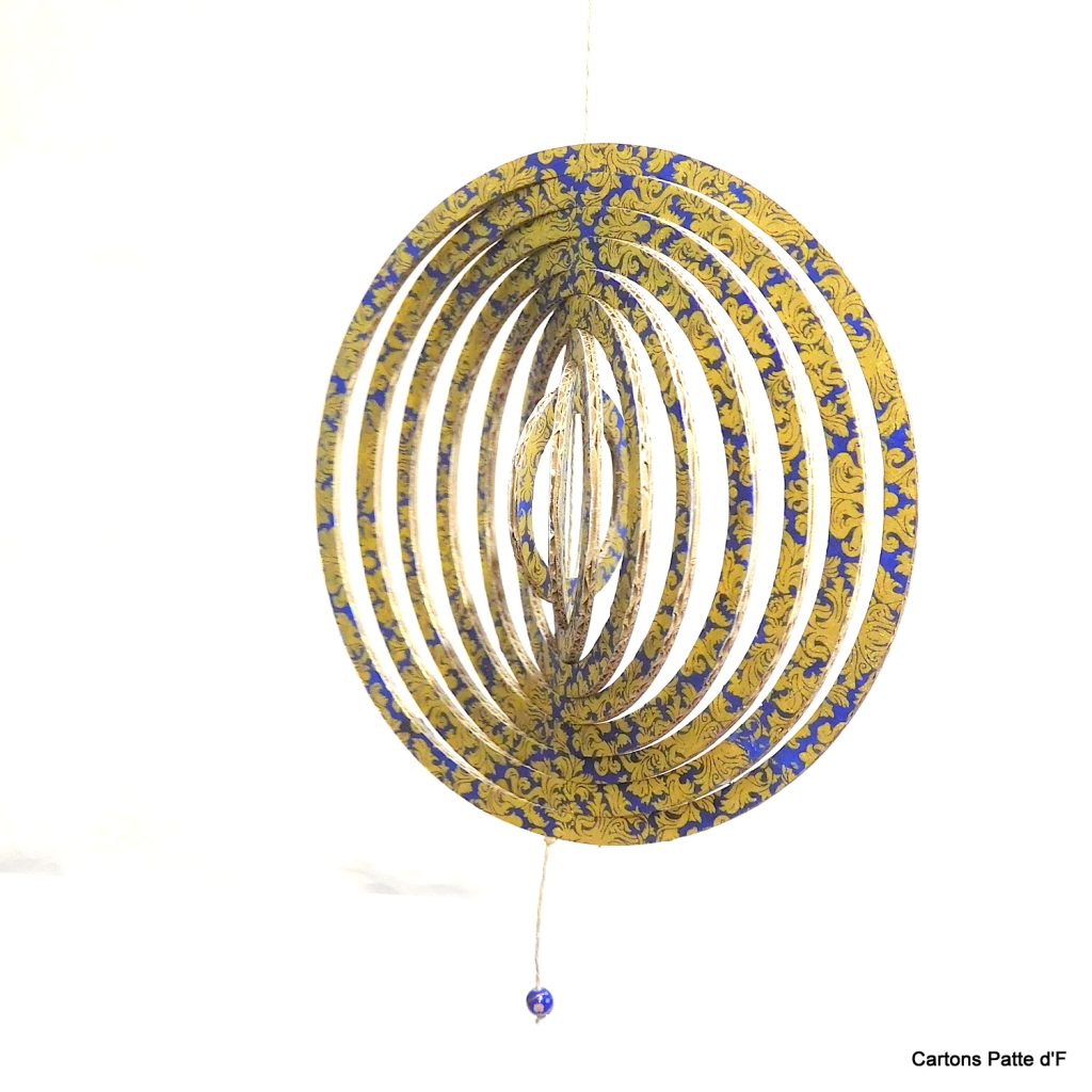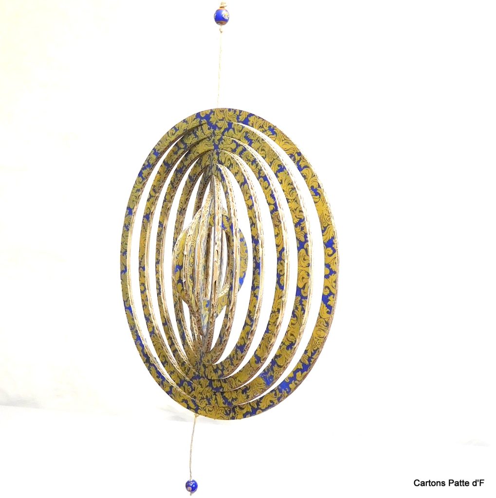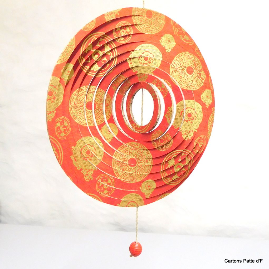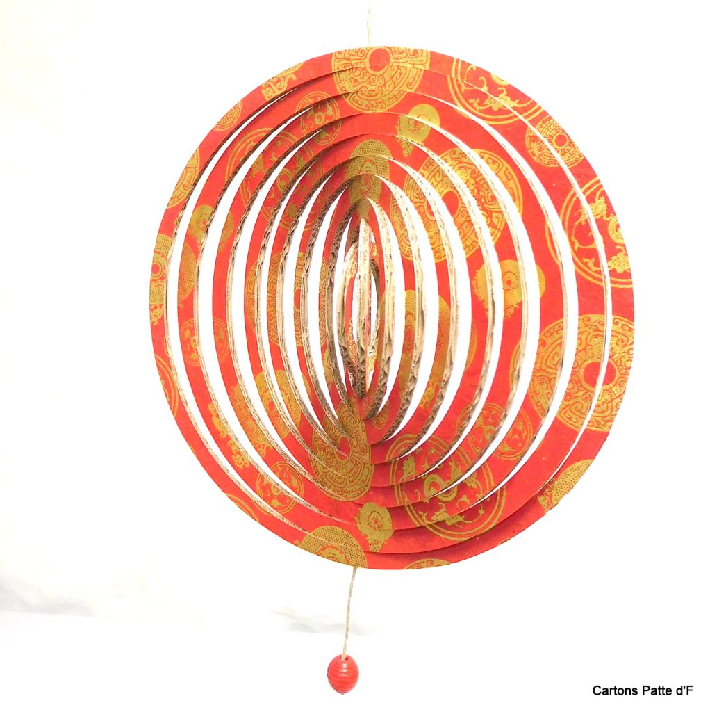 Ces mobiles sont réalisés entièrement à la main avec du carton de récupération et recouverts de papier népalais.