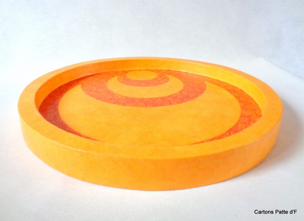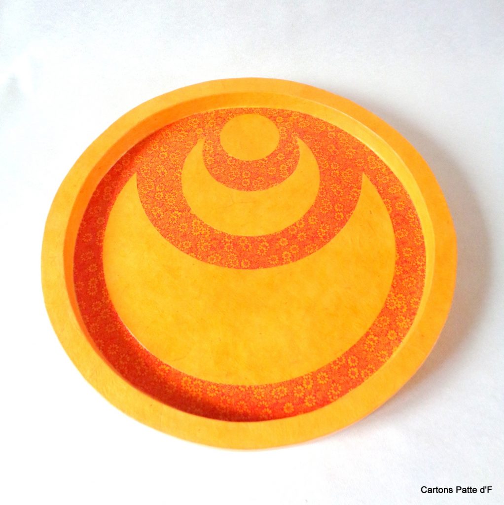Plateau de service en carton de récupération « Jaune ocre et fleurs orange »